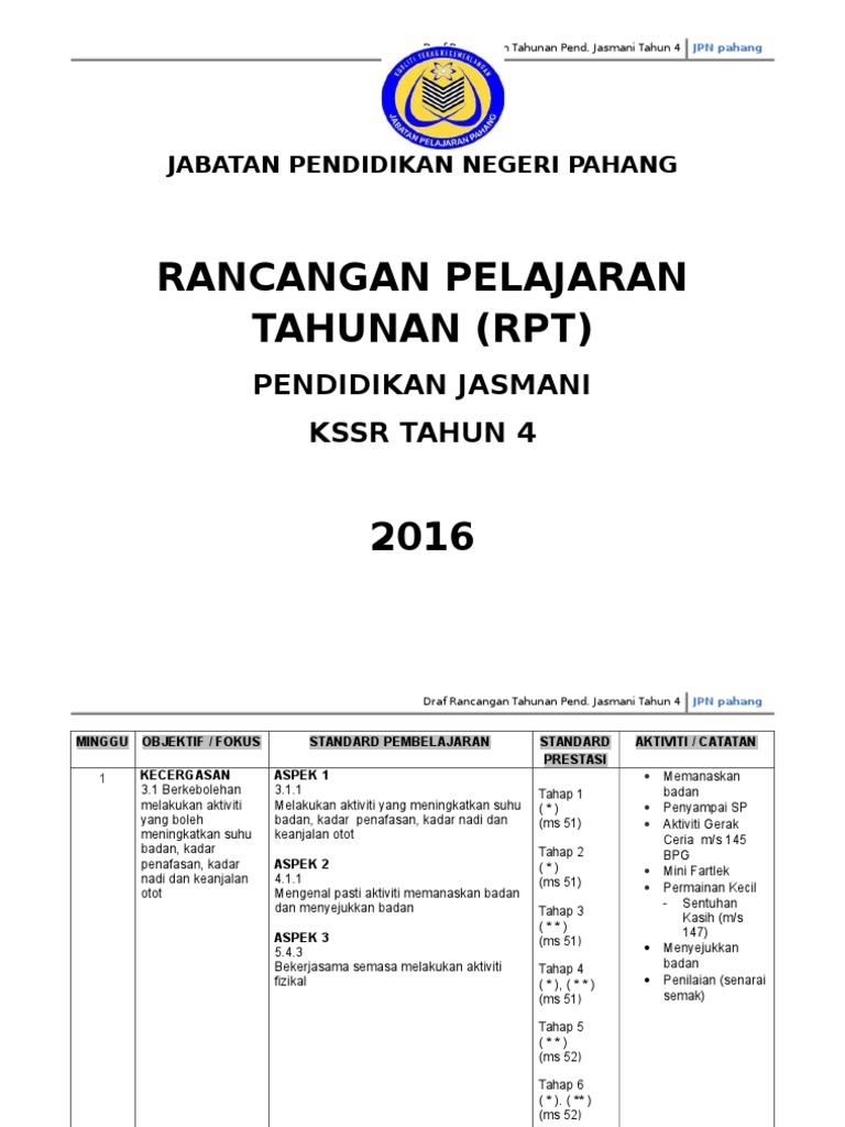 Rpt Pendidikan Jasmani Tahun 4