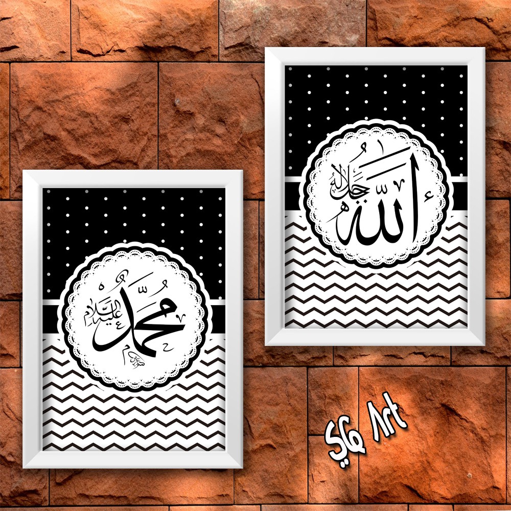 Jual Hiasan Dinding Poster Kaligrafi Allah Muhammad Hitam Putih D