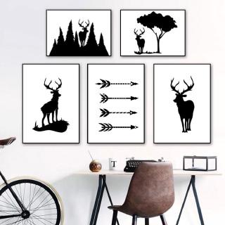 Lukisan Dinding Bahan Kanvas Warna Hitam Dan Putih Gambar Rusa