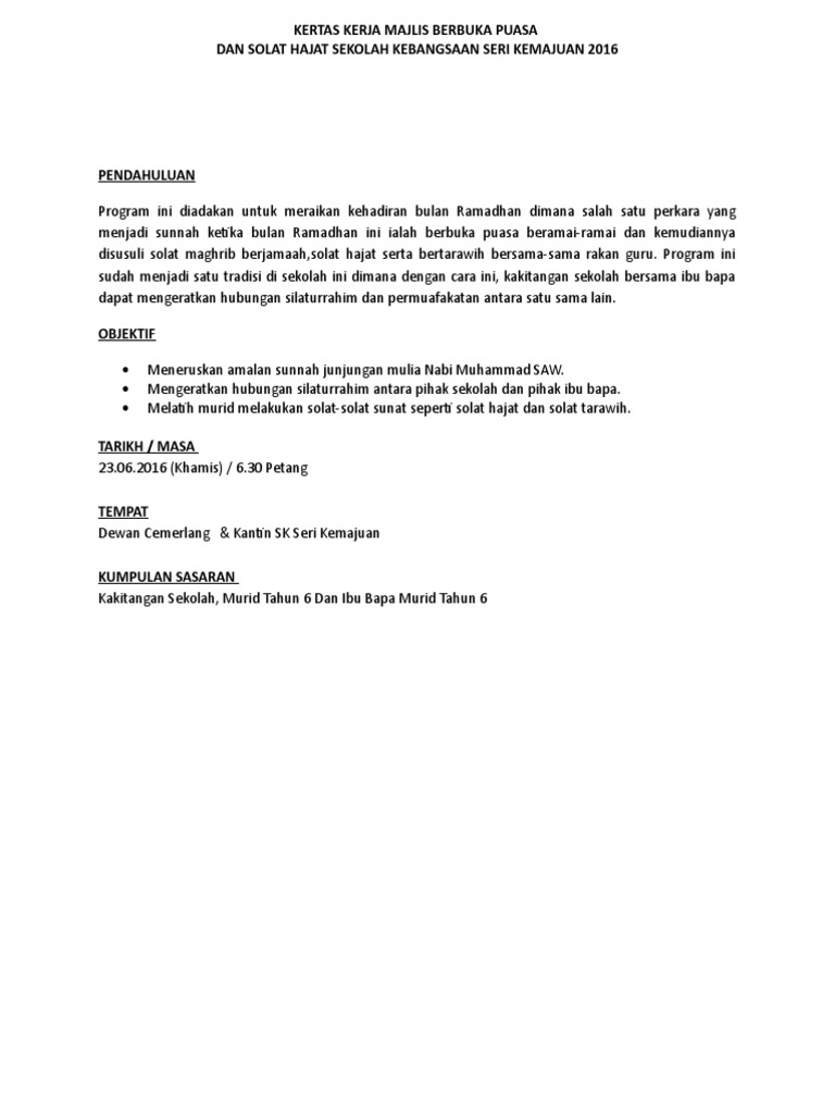 Kertas Kerja Majlis Berbuka Puasa 2017 Doc