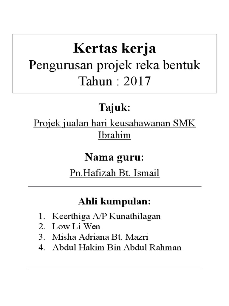 Kertas Kerja Pengurusan Projek Reka Bentuk