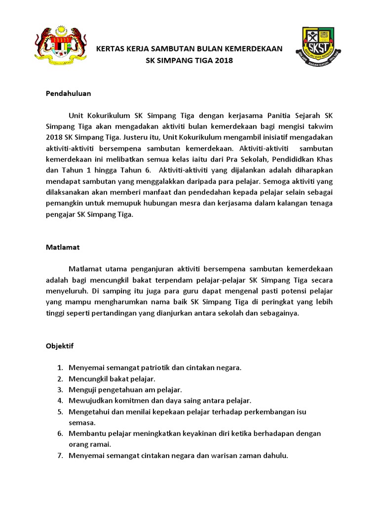 Kertas Kerja Sambutan Hari Kemerdekaan Peringkat Sekolah
