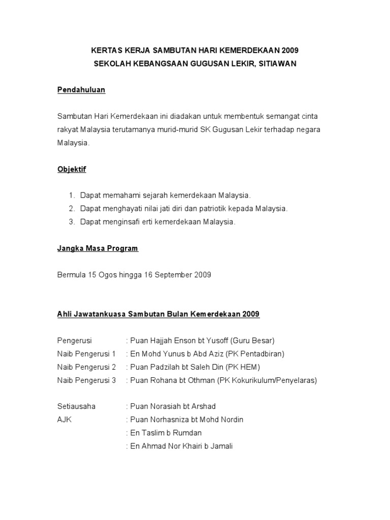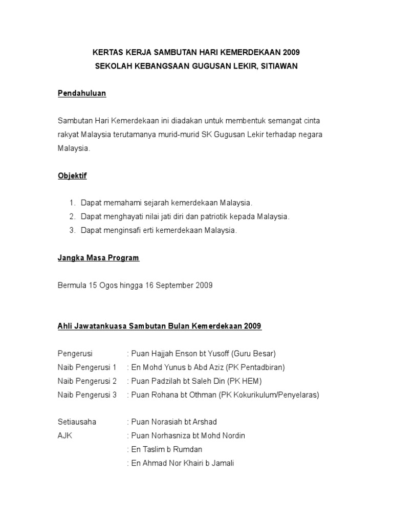 Contoh Kertas Kerja Sambutan Hari Kemerdekaan Dawn Hullender