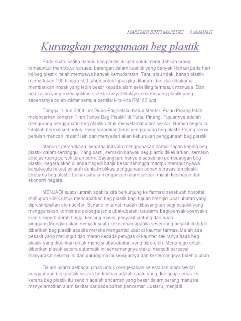 Doc Bahaya Penggunaan Beg Plastik Kesedaran Masyarakat Tahap Kritikal Suzana Yusof Academia Edu