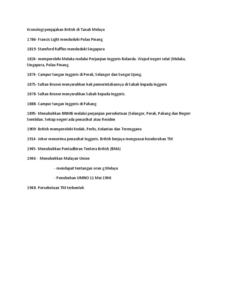Kronologi Penjajahan British Di Tanah Melayu