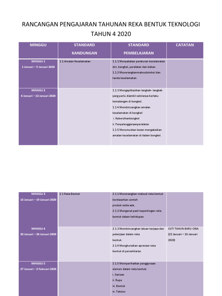 2 2 2 melakar pelbagai jenis garisan. Berikut merupakan koleksi rph reka bentuk teknologi tahun 4 kssr semakan. Rpt reka betuk dan teknologi tahun 4 group 1 daerah seremban rancangan pengajaran tahunan reka bentuk dan teknologi tahun 4 m 1 tajuk standard kandungan 1 0 1 1 organisasi dan keselamatan bengkel tahap penguasaan mengenal pasti peraturan dan keselamatan bengkel. Rbt tingkatan 2 bab 2 6 reka bentuk makanan.