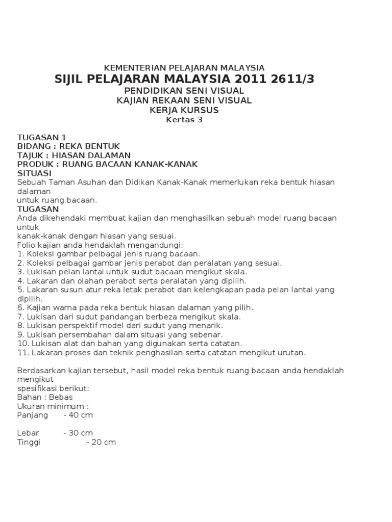 48311688 Soalan Kerja Kursus Pendidikan Seni Visual Spm 2011
