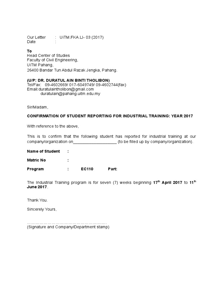 Surat Pengesahan Lapor Diri English 2017