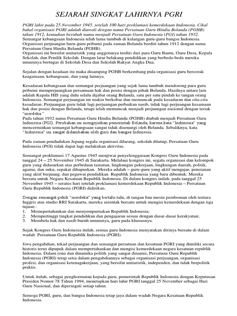 Sejarah Singkat Lahirnya Pgri