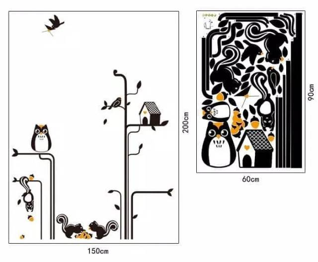 Stiker Dinding Wallpaper 60x90cm Motif Karakter Owl Burung Hantu