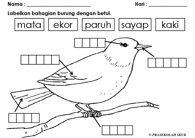 Burung Contoh Lembaran Kerja Bertemakan Burung Kepada Murid