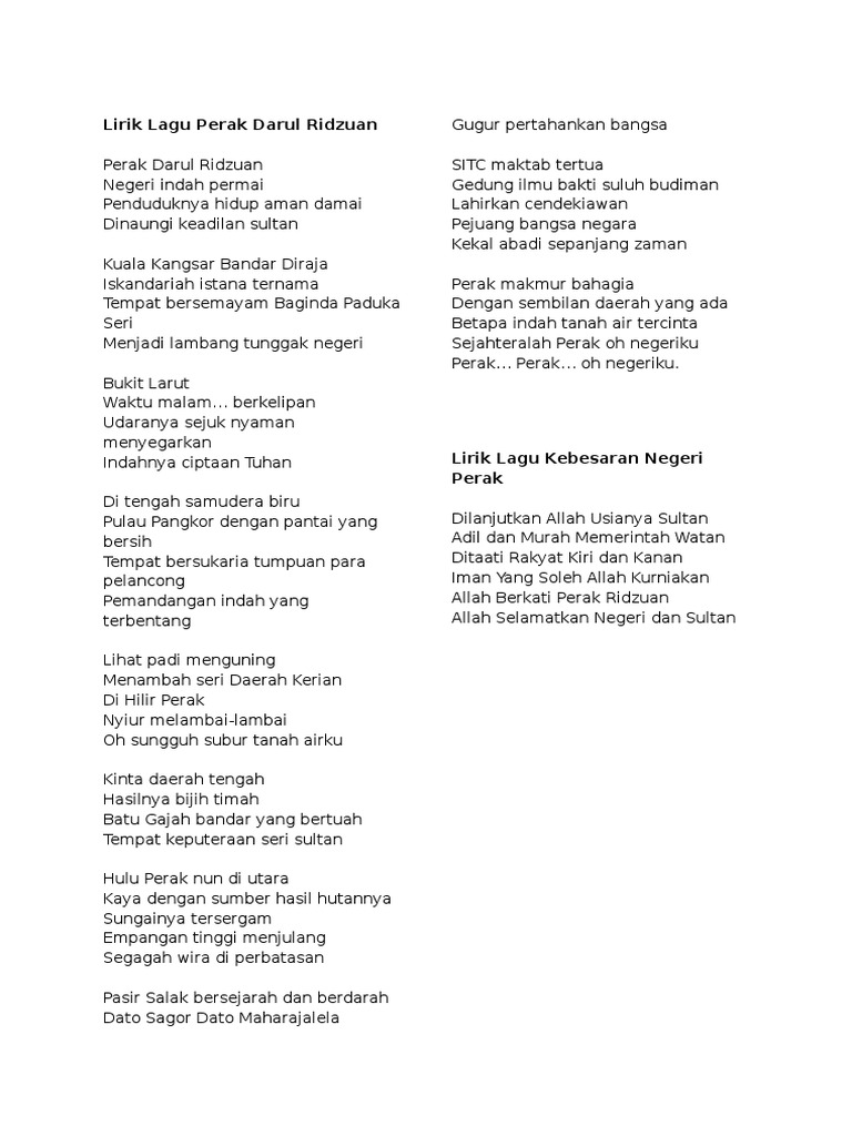 Segalanya Bermula Di Sini Lirik Lagu Negeri Perak