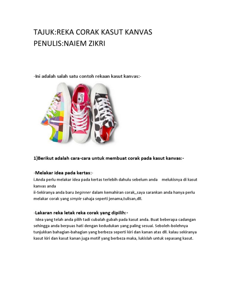 Tajuk Reka Corak Kasut Kanvas Penulis Naiem Zikri Ini Adalah