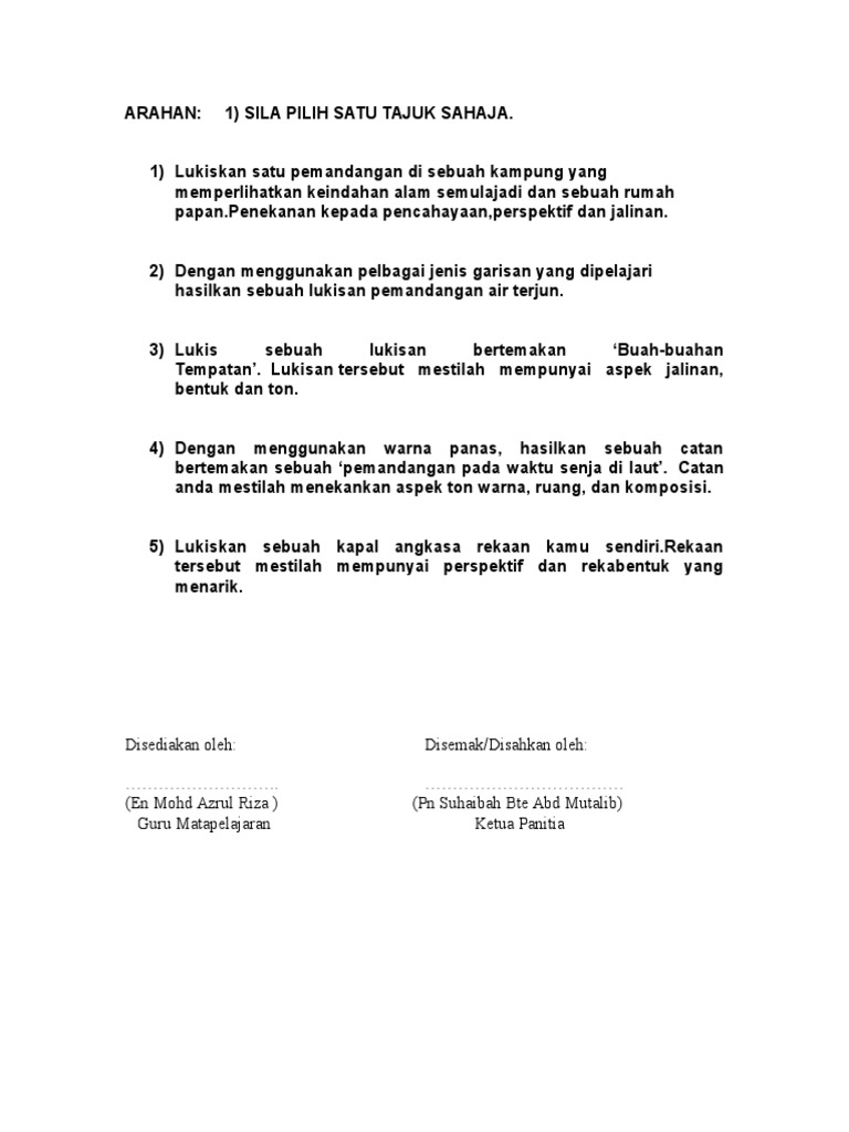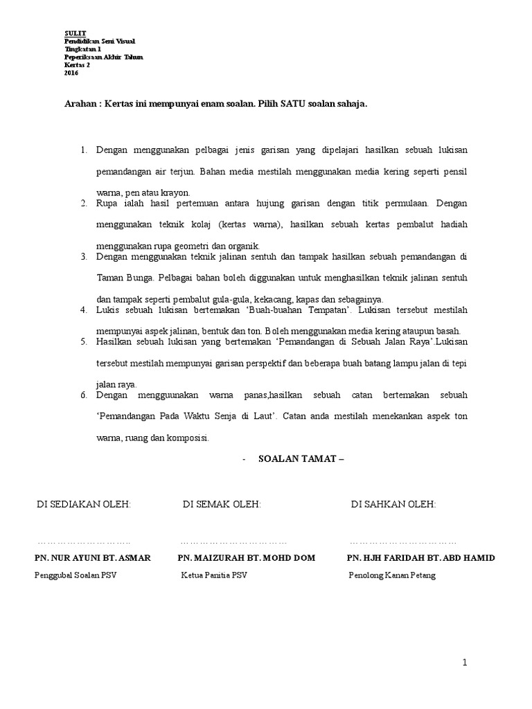 Seni Visual Kertas 2 Pentaksiran Pertengahan Tahun 2014 Tingkatan 1
