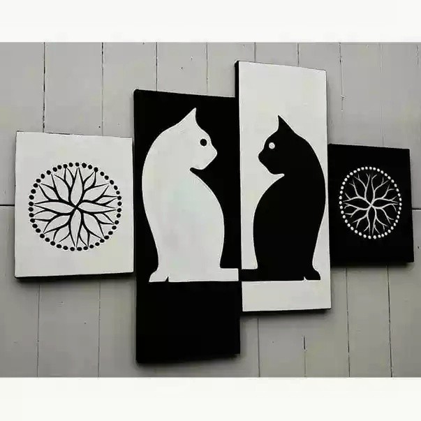 Lukisan Panel Siluet Kucing Hitam Putih Shopee Indonesia