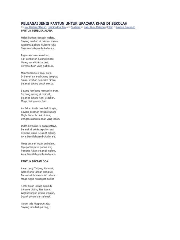 Pelbagai Jenis Pantun Untuk Upacara Khas Di Sekolah