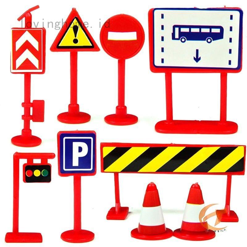 1pc Set Mainan Model Papan Rambu Jalan Lampu Lalu Lintas Untuk