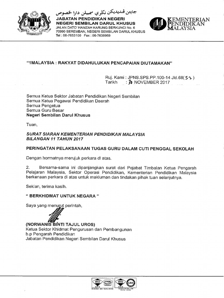 Surat Siaran Kementerian Pendidikan Malaysia Bilangan 11 Tahun
