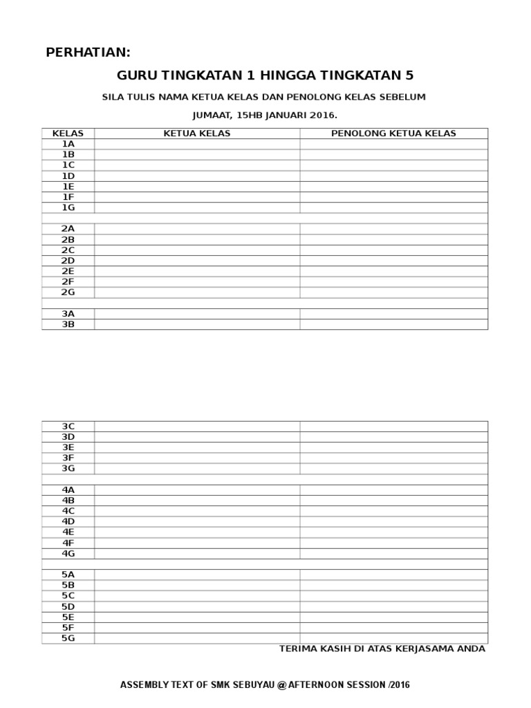 Ketua Dan Penolong Setiap Tingkatan