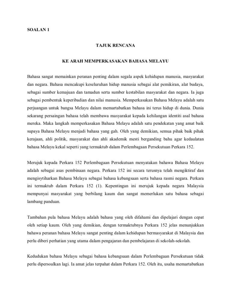 Perkara 152 Perlembagaan Persekutuan Merujuk Kepada