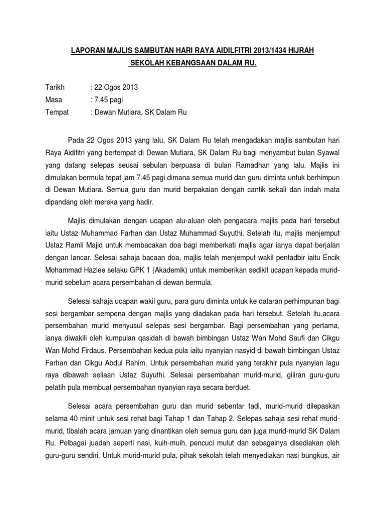 Doc Kertas Kerja Sambutan Aidil Fitri Dan Jamuan Hari Raya 2014