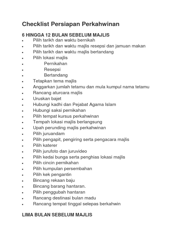 Senarai Semak Checklist Majlis Perkahwinan