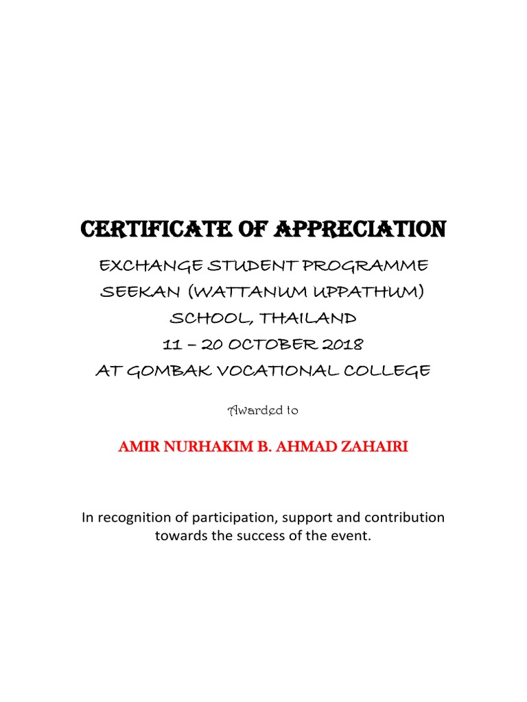 Sijil Penyertaan Dalam Bahasa Inggeris