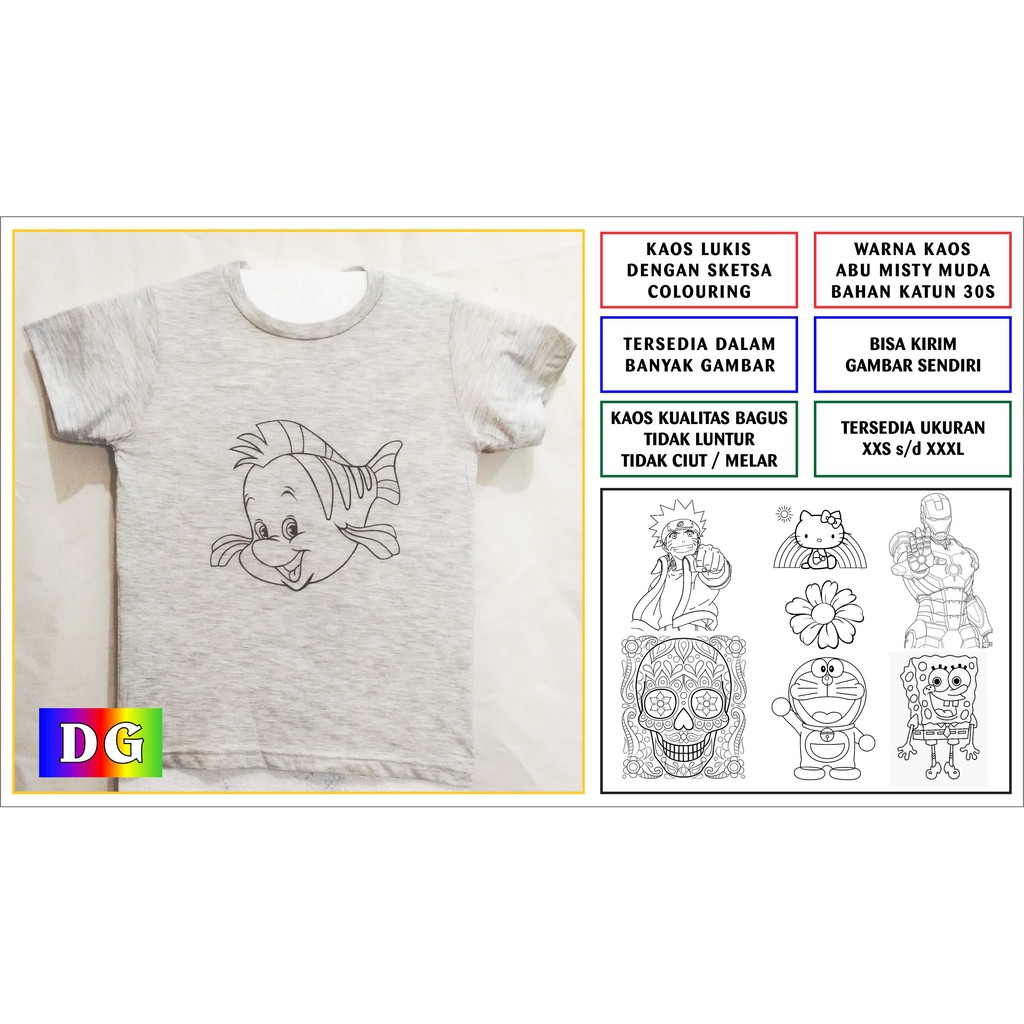 Kaos Lukis Dengan Sketsa Gambar Siap Diwarnai Size M Dan L