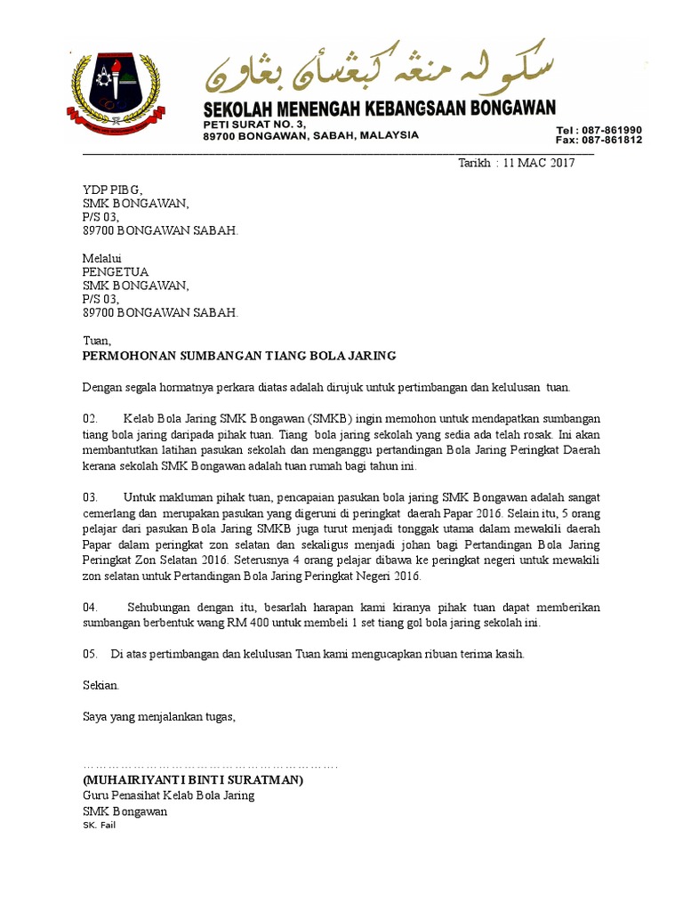 Surat Permohonan Sumbangan Pibg Fasranswer