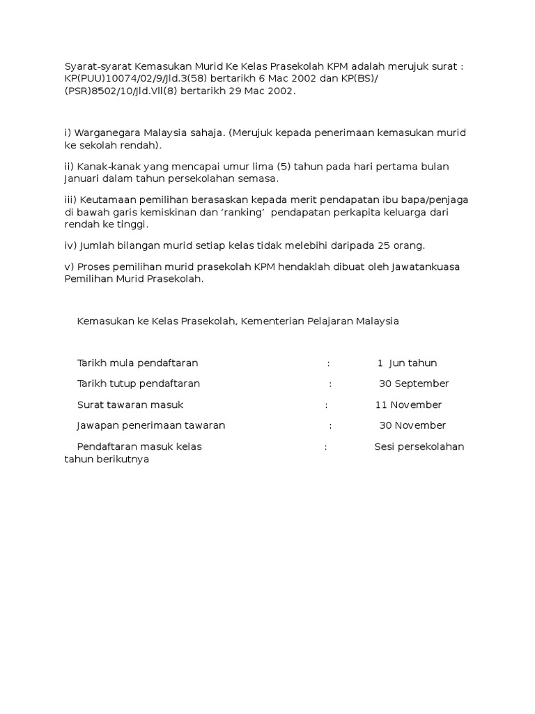 Kanak kanak warganegara malaysia sahaja. Syarat kemasukan prasekolah 2021. Hanya 2 syarat syarat ini perlu diberi perhatian buat ibu bapa penjaga yang dibenarkan sahaja untuk mendaftarkan anak anda ke pra sekolah pada tahun 2021 iaitu. Syarat permohonan kemasukan a.