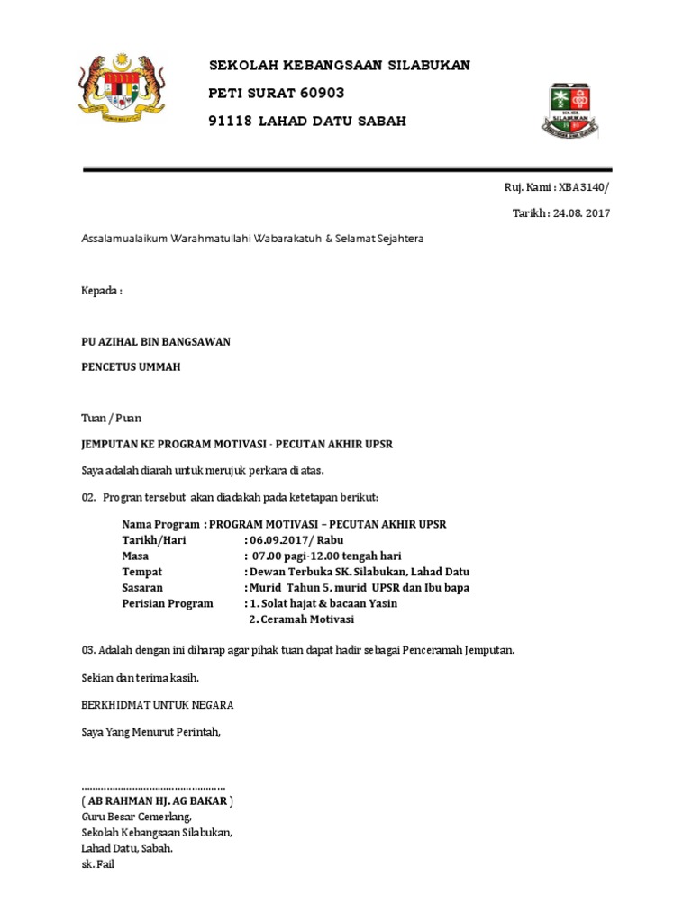 Surat Siaran Sambutan Hari Raya Sk Kopok Pasir Gudang Johor