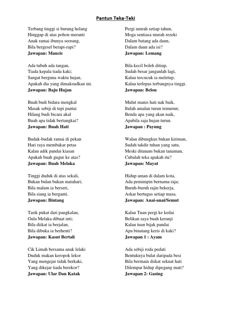 Jawab Pantun Teka Teki Berikut