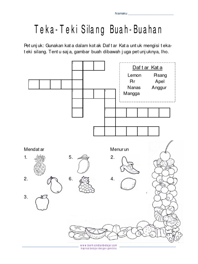Tts Anak Seri Buah Buahan Teka Teki Sekolah Dasar Buah