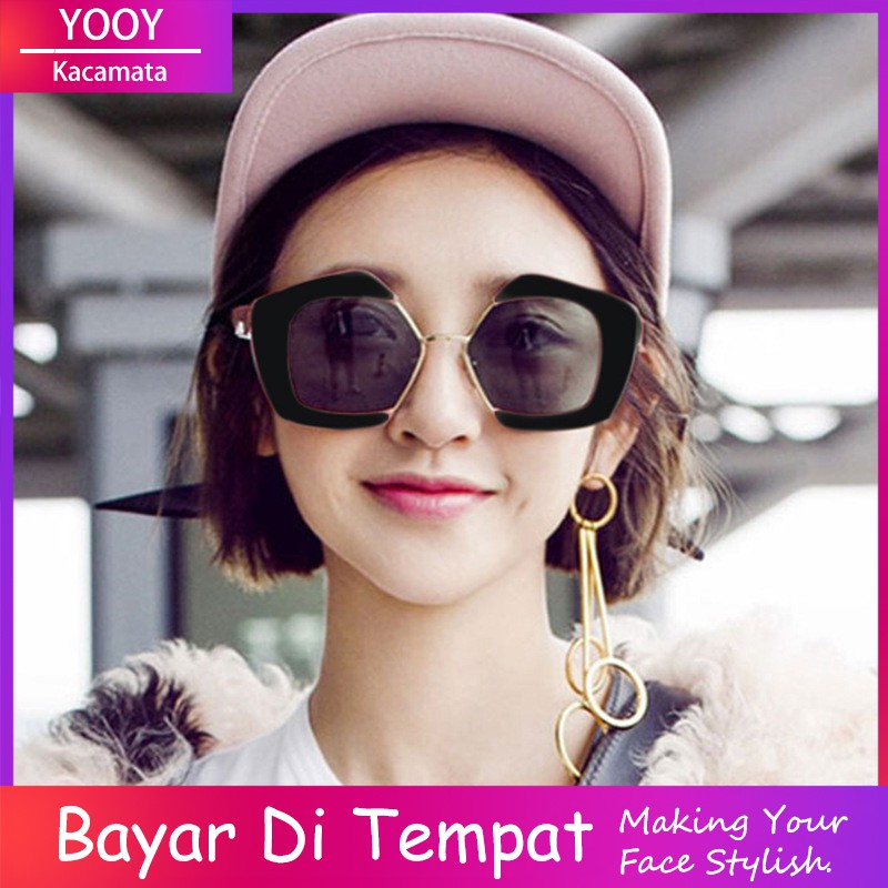 Bayar Di Tempa Kacamata Hitam Pria Wanita Poligon Frame Besar